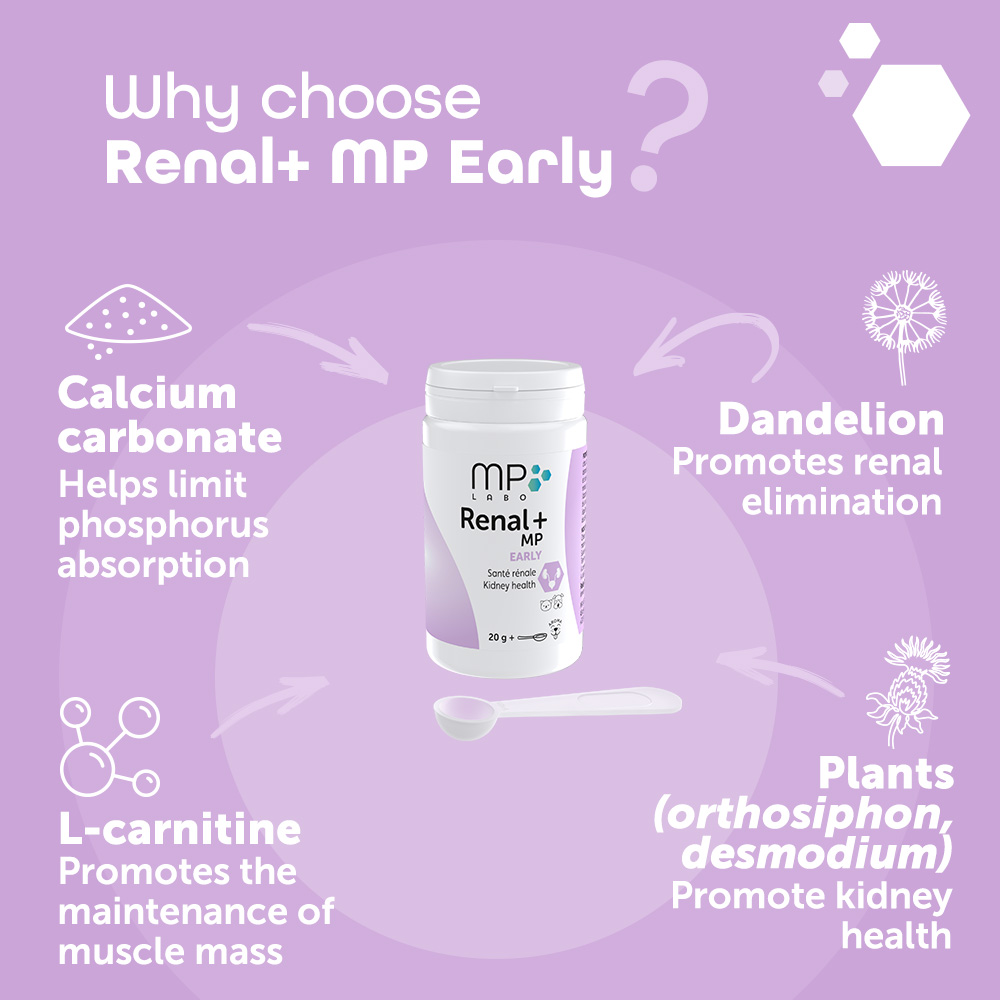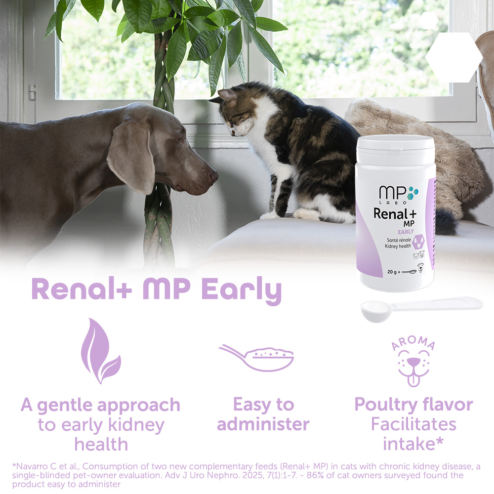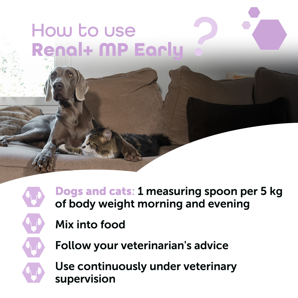 Information: Renal+ MP Early is a complementary feed to support kidney health in dogs and cats.